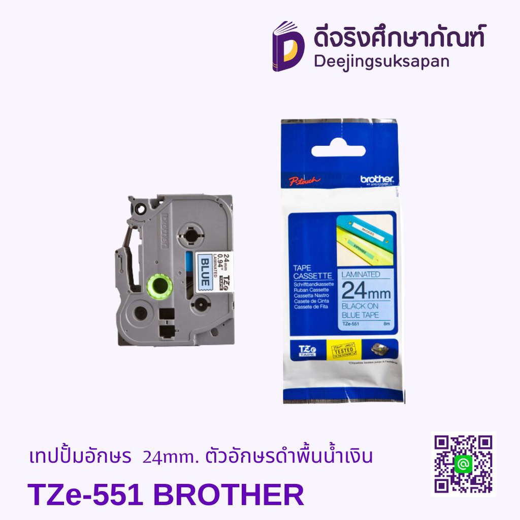 เทปปั้มอักษร TZe-551 24mm. ตัวอักษรดำพื้นน้ำเงิน BROTHER