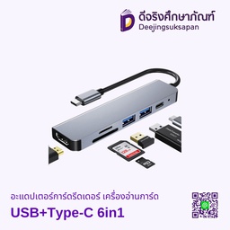 อะแดปเตอร์การ์ดรีดเดอร์ เครื่องอ่านการ์ด USB+Type-C 6in1